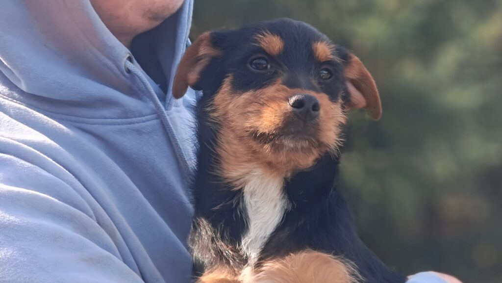 Cztery szczeniaki znalezione pod schroniskiem na początku marca. Mają ok. 2,5 miesiąca. Są w trakcie szczepień. Odrobaczone. Bardzo pogodne, aktywne i wesołe.