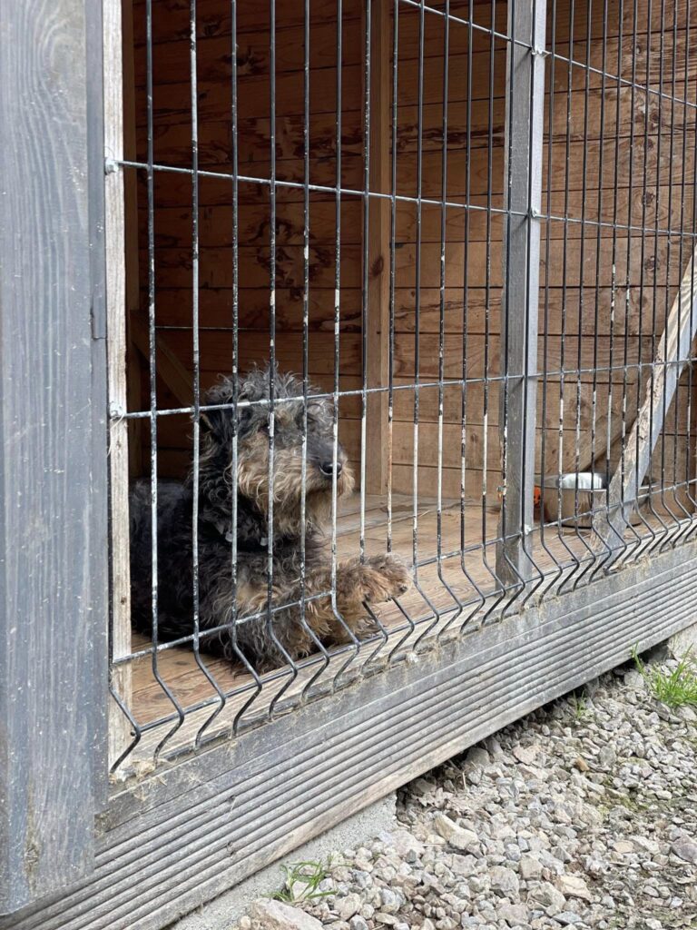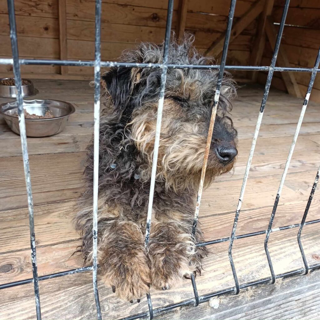 Lola trafiła do schroniska w kwietniu 2024 z Paszczyny. Zakołtuniona, zaniedbana, ale pełna życia i pozytywnie nastawiona do ludzi. Właściciel się po nią nie zgłosił, więc niebawem będzie możliwa jej adopcja.