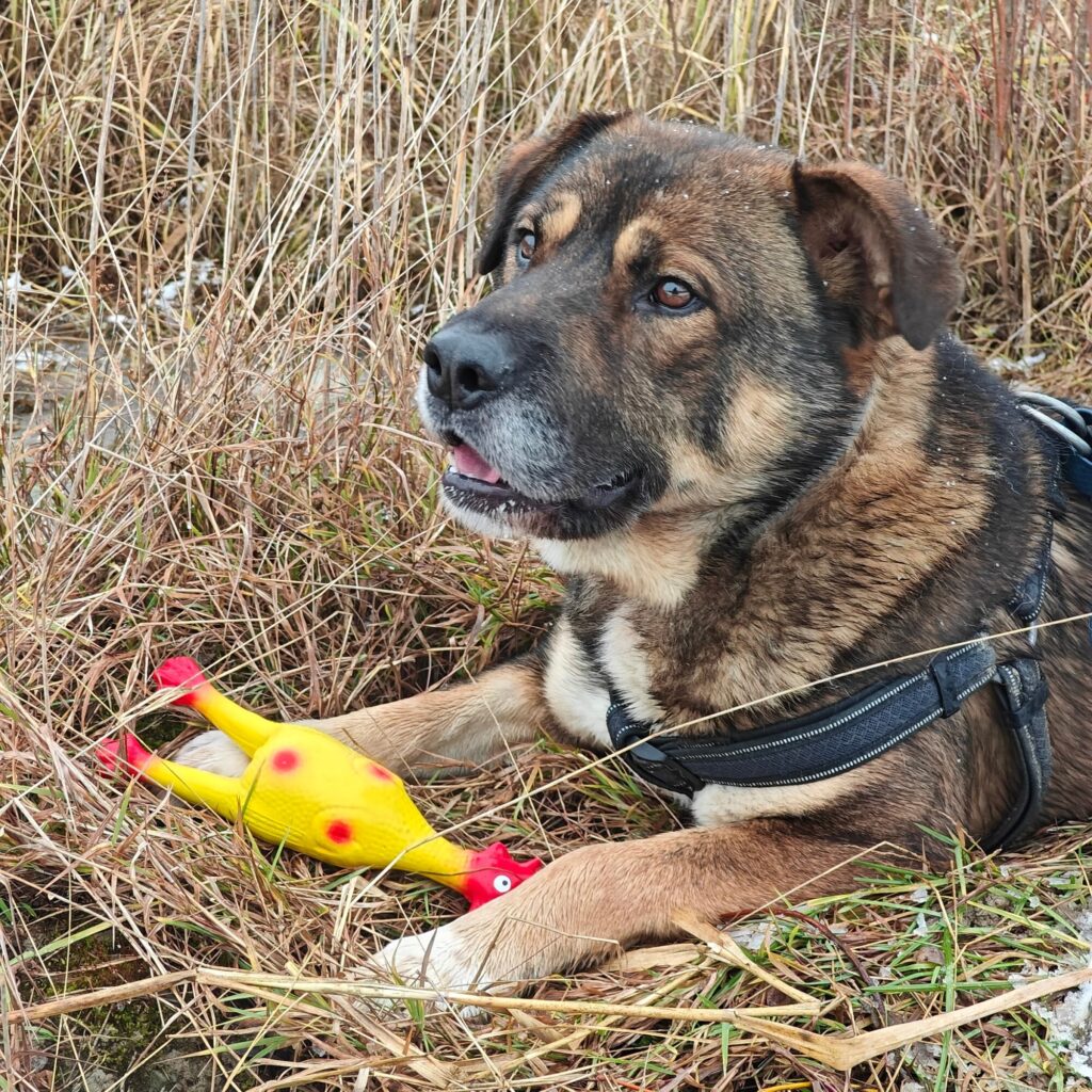 Yogi jest energicznym, aktywnym psem. Chłopak jest chętny na wszelkie aktywności, nic mu nie straszne, lubi wysiłek fizyczny, więc odnajdzie się przy kimś, kto zapewni mu codzienny ruch i zabawy, bo to też lubi:) Potrzebuje spacerów, stymulacji, eksplorowania i zabawy- wtedy jest szczęśliwym psem i takim chcemy go widzieć w nowym domu. Szukamy mu odpowiedzialnego domu, bo Yogi lubi atrakcje, a pozostawiony sam sobie, na pewno zorganizuje je sobie na własną rękę, np. uciekając z posesji. Czy Yogi kogoś zauroczy? Oby!
